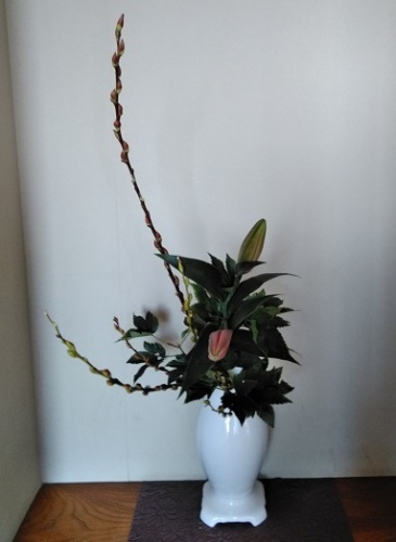 生徒様の作品 赤芽柳 京都 宇治 生け花よもやま話